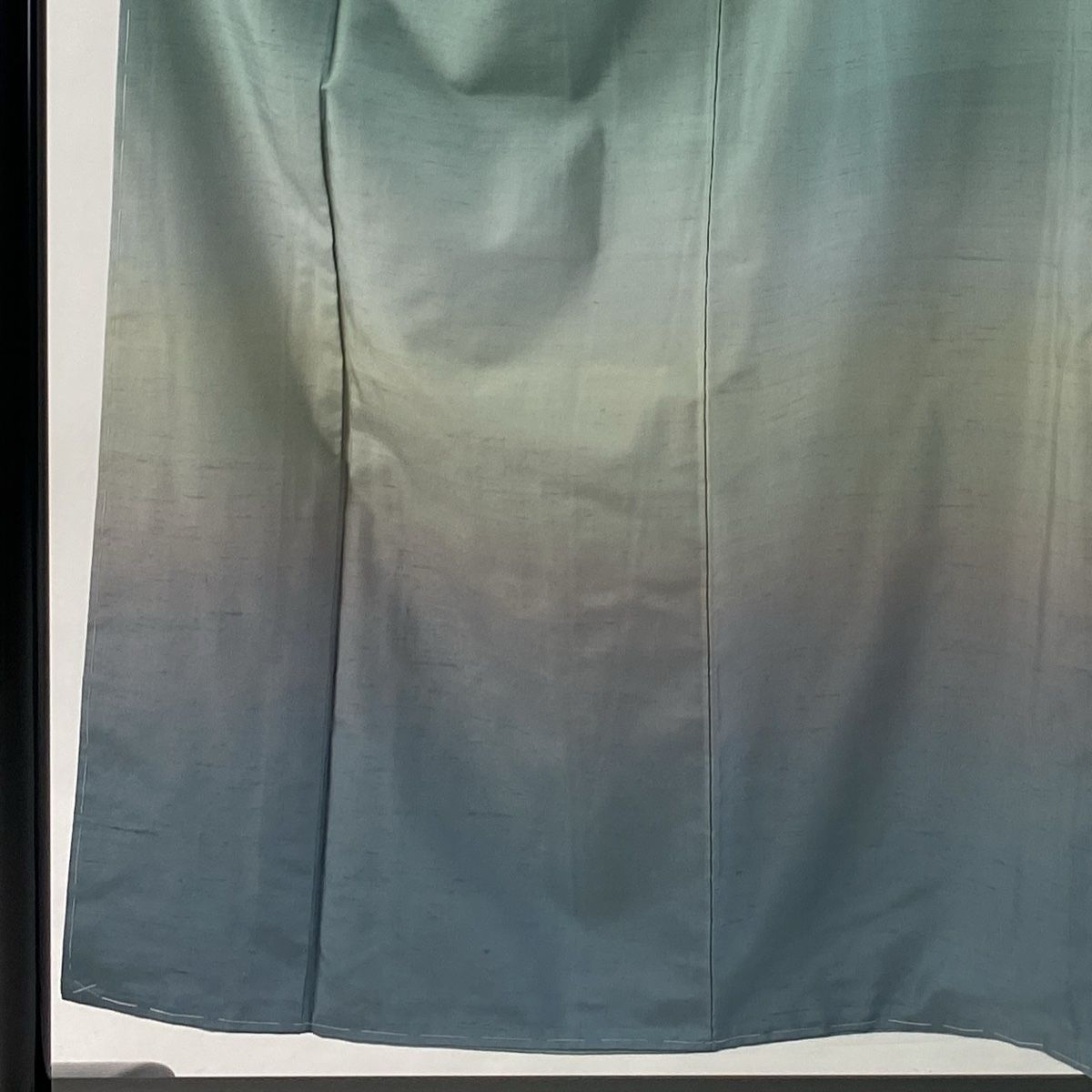 付下げ 身丈155 cm 裄丈65.5 M 袷 牛首紬地 落款 証紙 ぼかし柄 薄緑 正絹 一つ紋