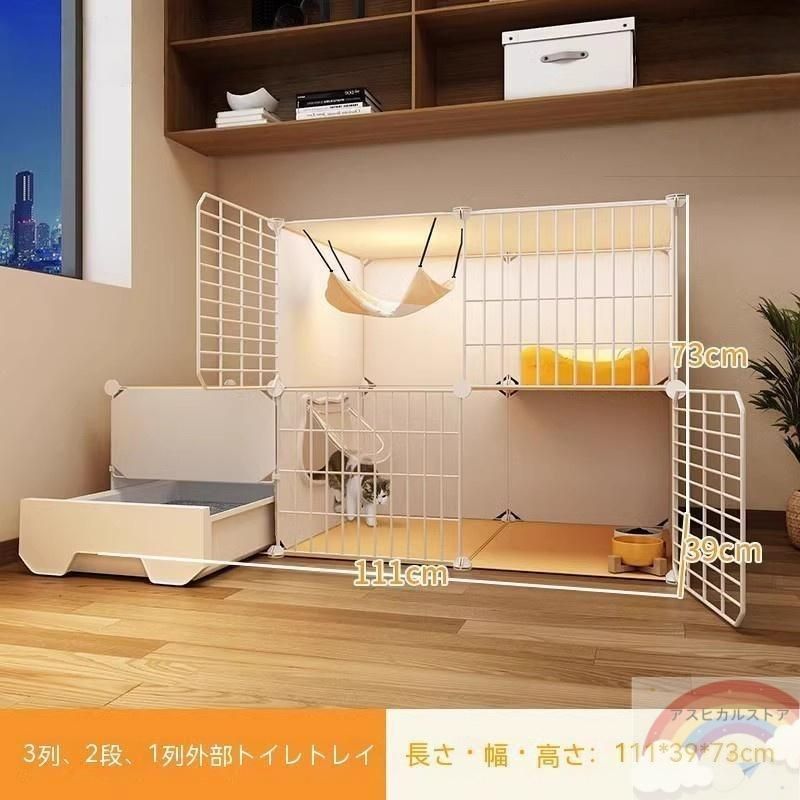 キャットケージ 3段 大型 猫 ケージ ハンモック付き ゲージ ペットサークル コンパクト 室内用 ミニキャットケージ 猫小屋トイレ一体
