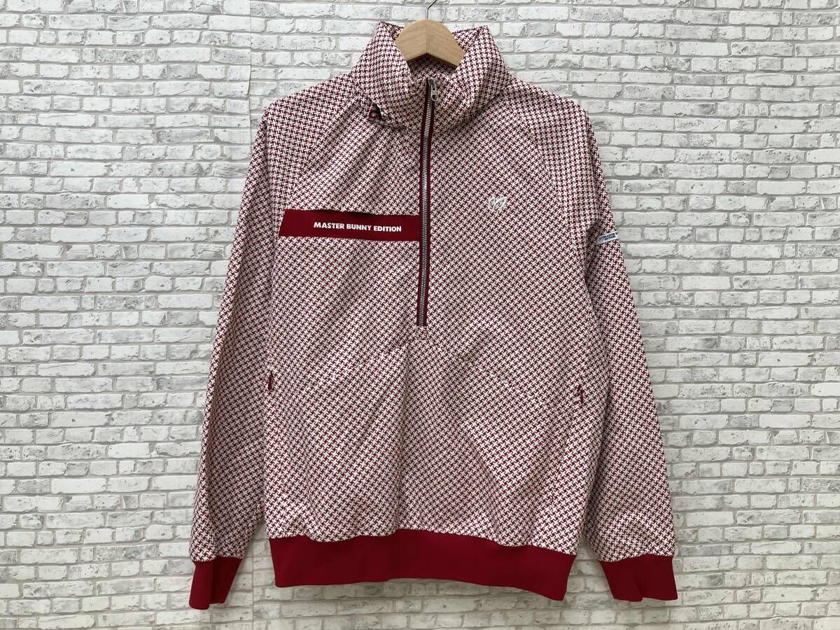 ゴルフウェア MASTER BUNNY EDITION マスターバニーエディション ハーフジップ プルオーバー 158-9121201 サイズ4 総柄 千鳥 赤×白