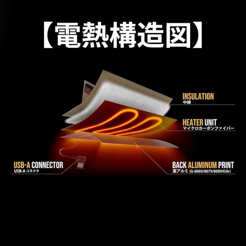 ボルトヒート 電熱ベスト Vネック インナー向け 保温 アルミプリント 防風 3段階温度調整 防寒対策 屋外作業 通勤 通学 服 バッテリー グラディエーター G-8069 モク SS