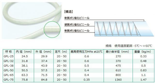 十川産業 サクションホース 50 mm 10 m ゴールドフレックスL GFL-50 A 2インチ 排水ホース 送水ホース エンジンポンプ用 水中ポンプ用 ホース