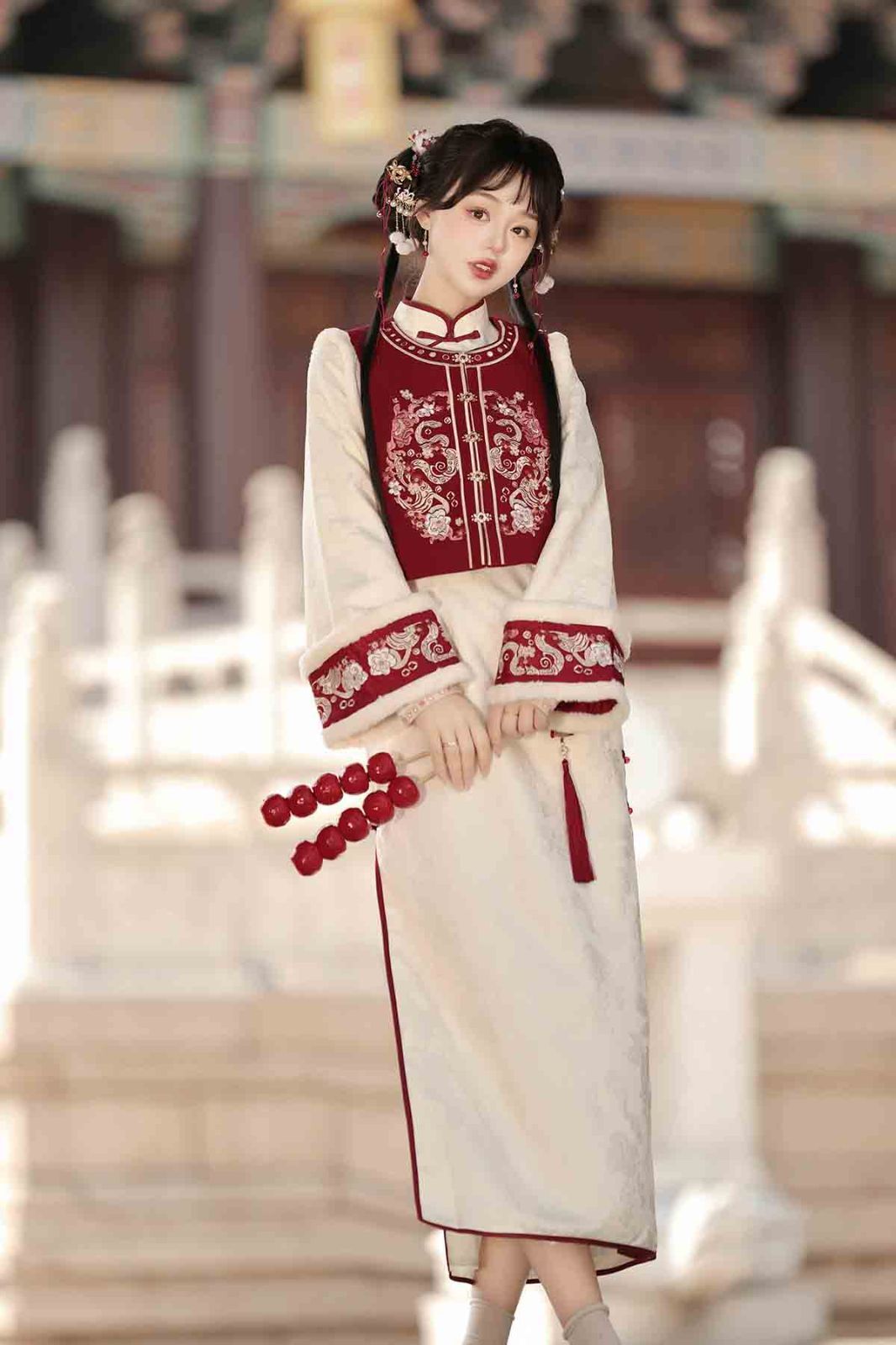 金蛇納福 新中式 中国風 レディース 国風デザイン 日常使い ベスト チャイナワンピース セットアップ 旗袍風 漢元素 秋冬コーデ レイヤード 上品 エレガント 大人 お出かけ 普段着 撮影 イベント