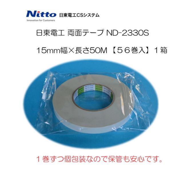 日東電工 両面テープ ND 2330 S 幅15 mm 長さ50 M 1箱 56巻入 TA 131 56 コンテナ輸送などプラダンと緩衝材の接着に向いています オートテープカッター対応