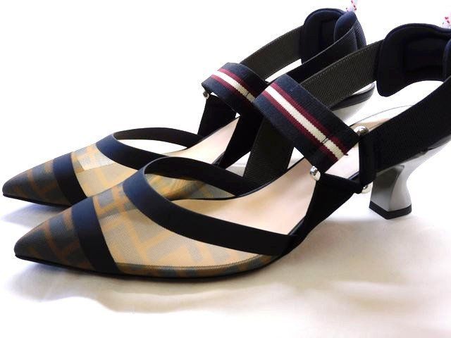 フェンディ コリブリ スリングバックシューズ パンプス 靴 24.5 cm 37 1 2 メッシュ レディース FENDI 7 J