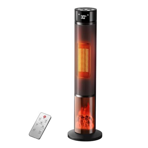 セラミックヒーター ヒーター 速暖 2025新開発 ECO恒温省エネ マイナスイオン 電気ファンヒーター タワー型 3 D疑似炎 LCDディスプレイ 左右自動首振り 空気清浄 冷暖兼用10 W 800 1200 三段階切替 静音 6 e 91 db 9