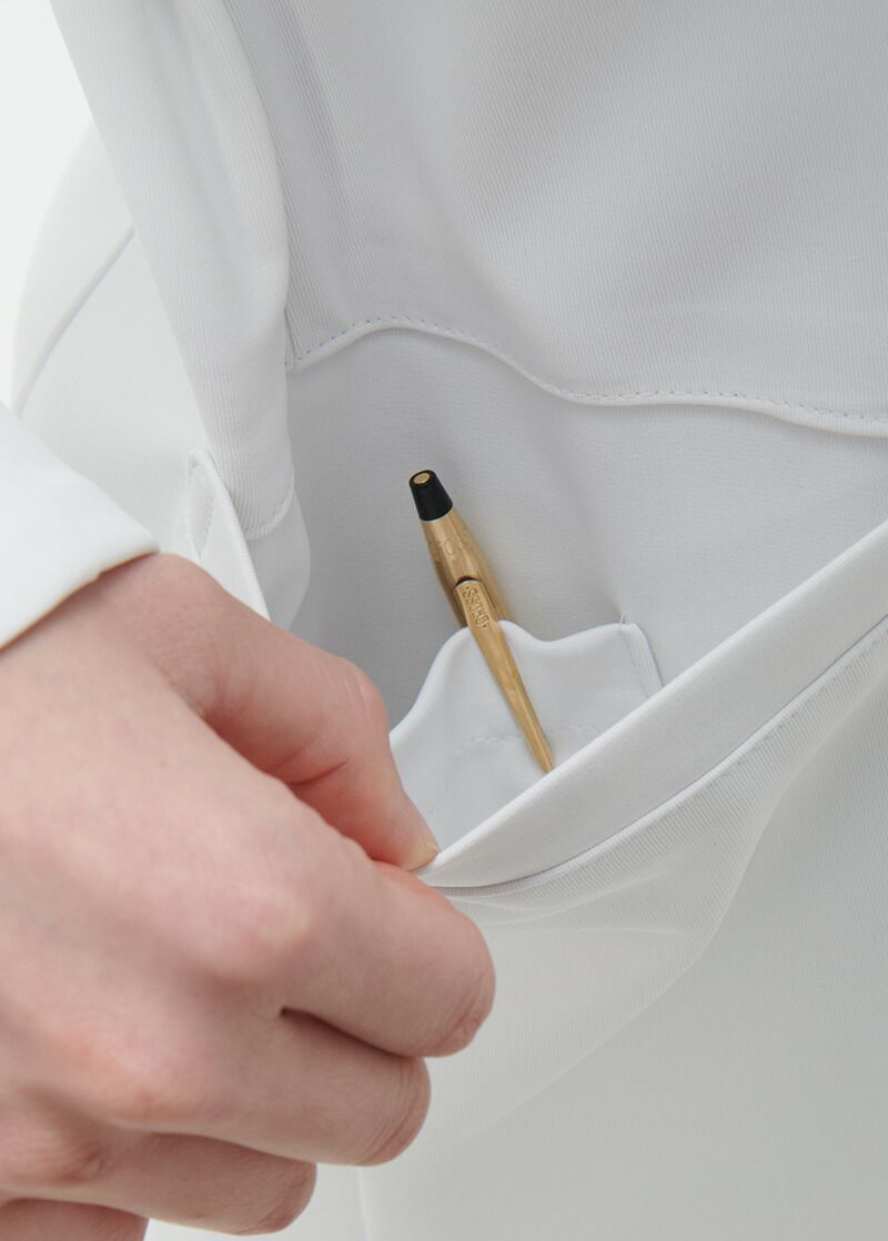知性とやさしさを演出する衿周りの雰囲気や洗練されたシルエットとデザインに最先端の高機能ニット素材を使用することで快適な着心地をプラスしました。審美性と機能性を併せ持つ革新的なドクターコートです。