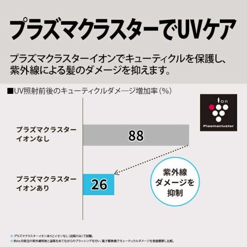 ●水分子に包まれたイオンが、髪表面をうるおいでコーティング。保湿効果を高め、キューティクルを引き締めて、ダメージに強いしなやかな髪へと導きます。イオン濃度もさらにアップしました。