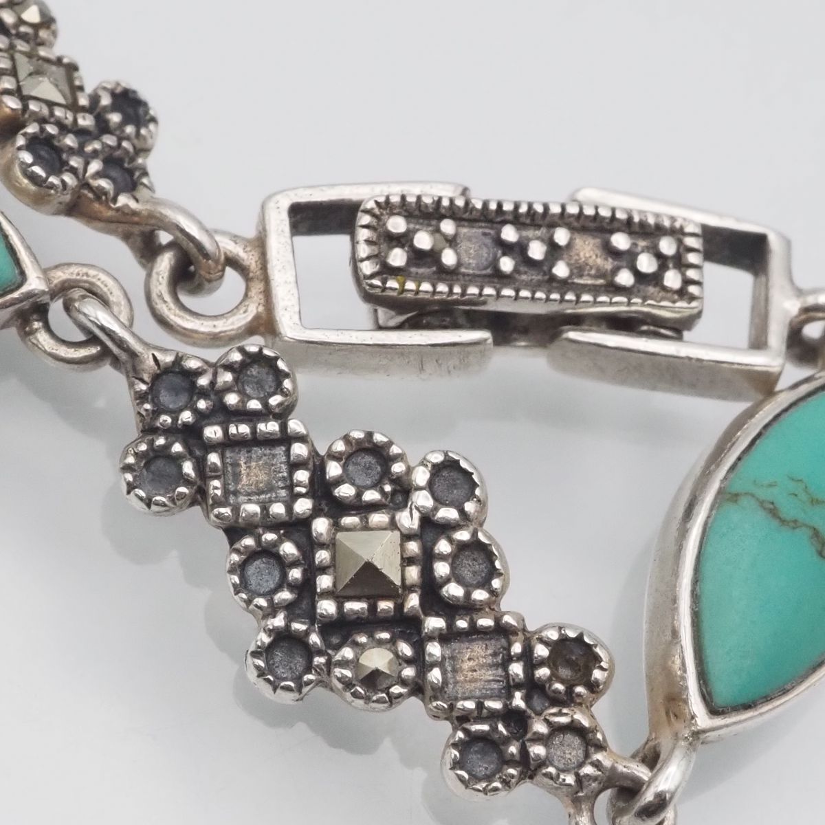 H 695 ターコイズ トルコ石 マーカサイト マルカジット 925刻印 ブレスレット デザイン シルバー ヴィンテージ 誕生石