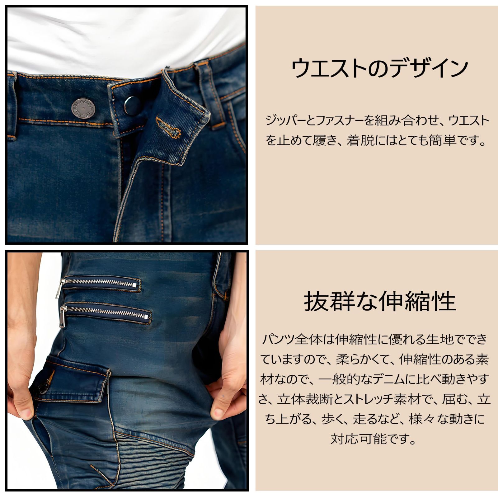 [RENHE] バイク用パンツ メンズ ライディングパンツ プロテクター ライダースパンツ 春秋 バイクズボン デニム レーシングパンツ オールシーズン ストレッチ素材 耐磨耗性 ブルー Mサイズ