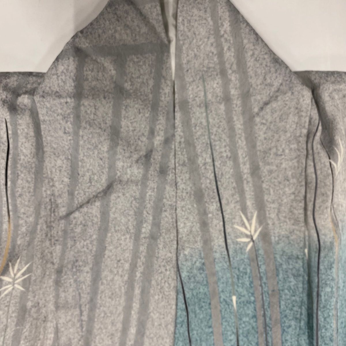 訪問着 身丈165 cm 裄丈68 L 袷 竹 笹 箔 染め分け 青灰色 正絹 秀品