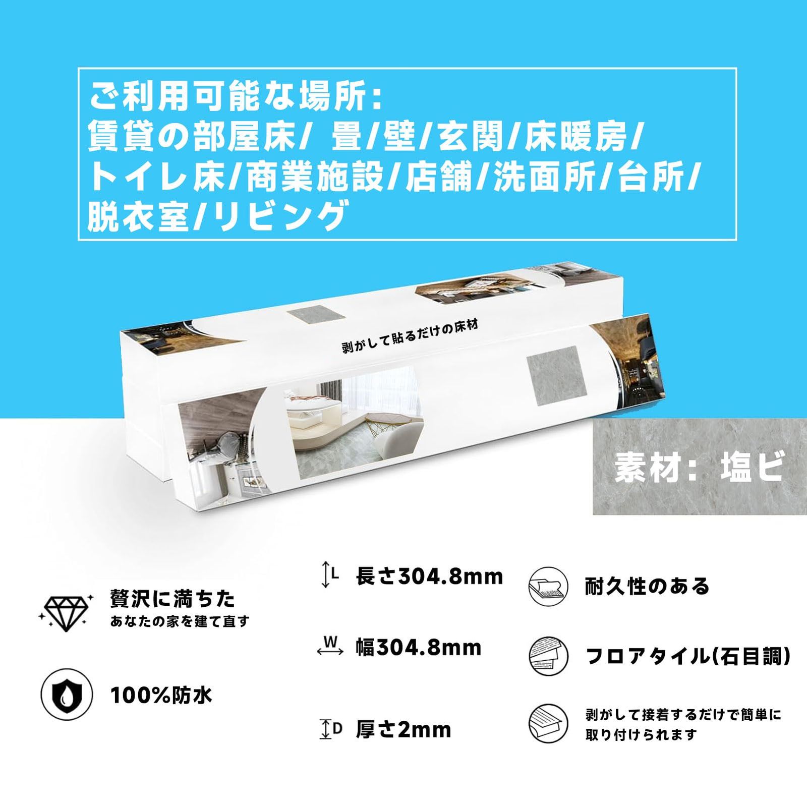 WOWQ フロアタイル 大理石 置くだけ コンクリート調 厚手2 mm 3畳分 フロアシート コンクリート 床材 接着剤不要 床張り替えシート 床シート 賃貸 床 滑り止め 防音 304 8 大理石調 G