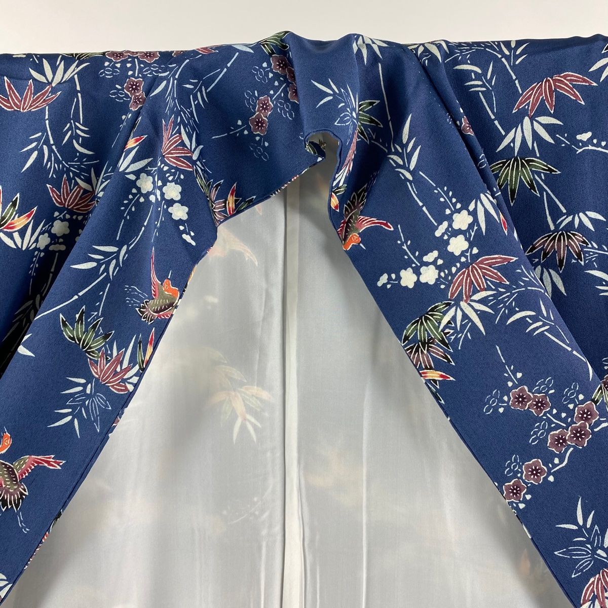 小紋 身丈155.5 cm 裄丈62.5 S 袷 琉球紅型 平野晋二郎 落款 笹 鳥 藍色 正絹