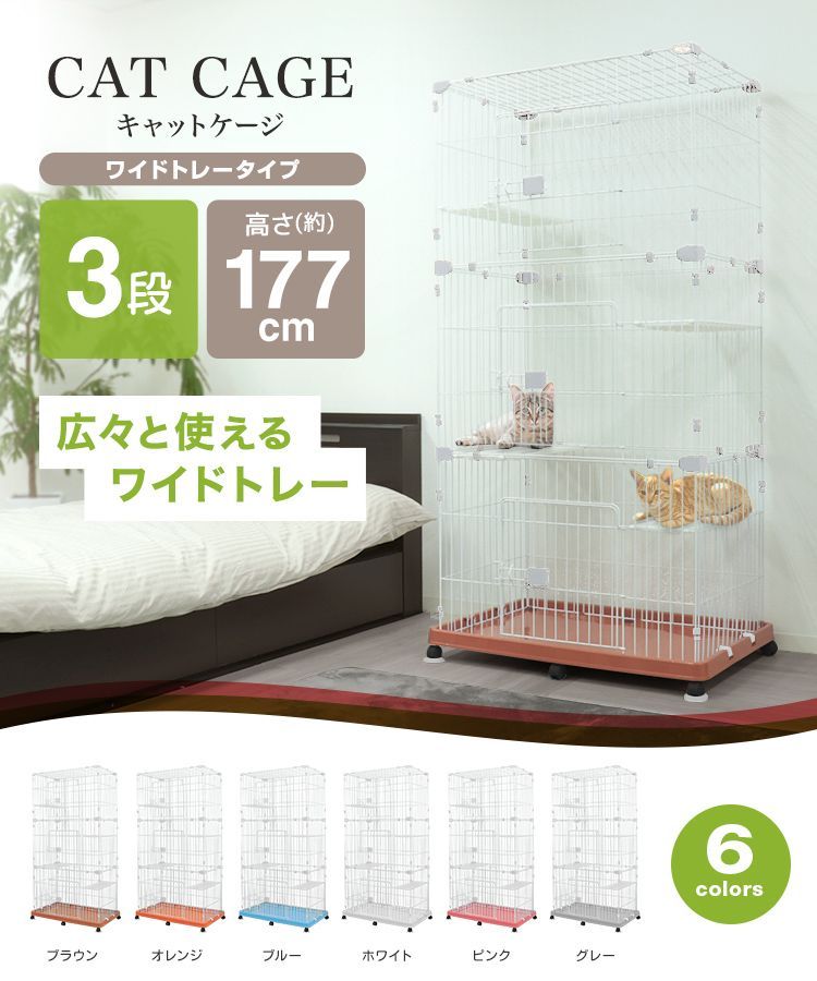 猫 ケージ 3段 キャットケージ ペットケージ ゲージ ハウス キャットゲージ 猫ケージ 猫ゲージ 大型 おしゃれ 室内 多段 キャスター付 CAGEB 3