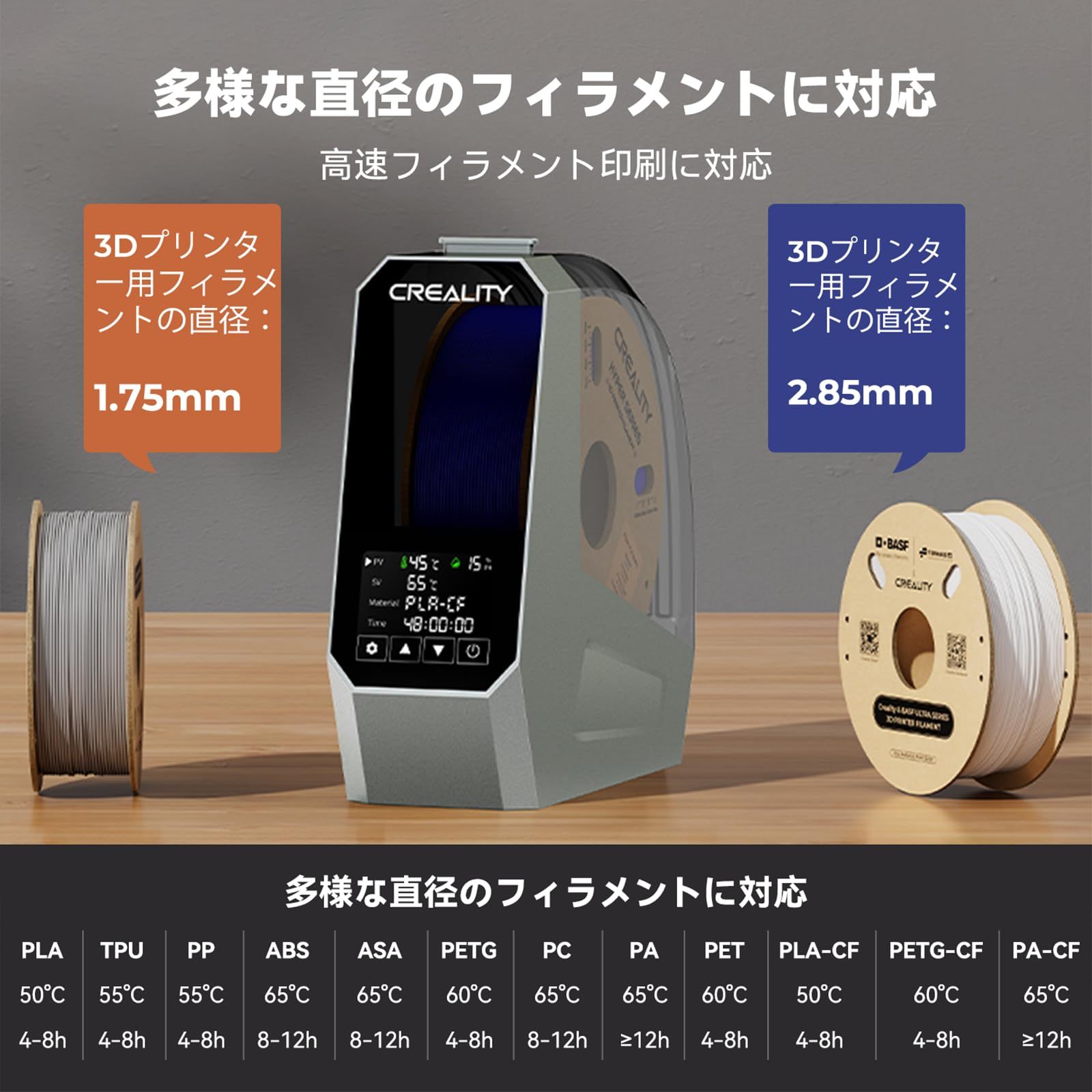 Creality Space Pi フィラメント ドライヤー 1 ロール容量 1.75mm 2.85mm フィラメント PLA PETG ABS TPU ASAと互換性があり 45℃ ~70℃ 温度調節可能 フィラメントドライヤーボックスの脱水機 防水 防塵