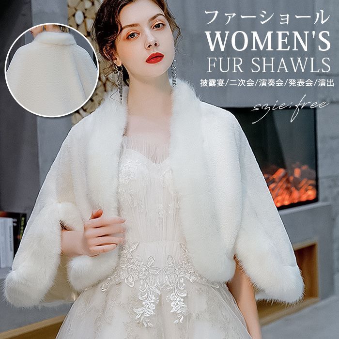 ボレロ レディース ファーショール ケープ ファー ファーポンチョ ふわふわ もこもこ ショール パーティー 冬 暖かい ウェディングドレス ポンチョ 可愛い 披露宴 二次会 演奏会 発表会 shankuan 17