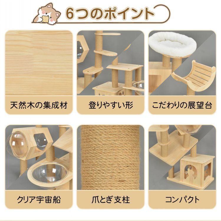 キャットタワー 木製 天然 天然木 据え置き 低め 置き型 多頭飼い 宇宙船 クリアボウル 透明カプセル 見晴台 スリム 省スペース 低い 爪とぎ 麻縄 展望台 クッション 登りやすい 猫タワー おしゃれ pt 103