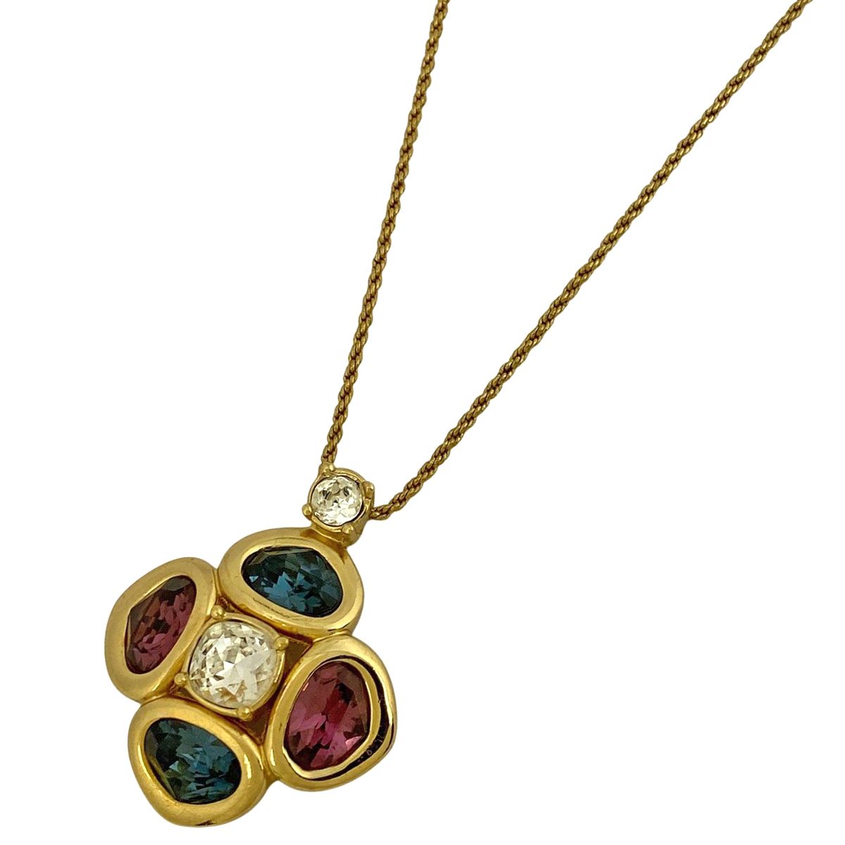 クリスチャンディオール Christian Dior ラインストーン デザイン ネックレス ストーン GP ゴールド マルチ レディース