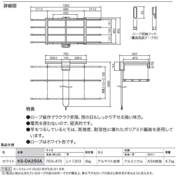 KS DA 250 A Nasta キョーワナスタ 屋内物干 手動昇降タイプ