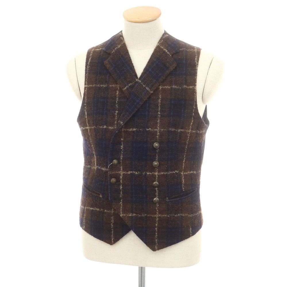 タリアトーレ ツイードウール チェック ダブルジレ ベスト ブラウンxネイビー サイズ44 メンズ